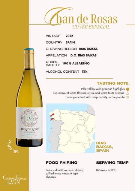 D.O. RIAS BAIXAS Vintage 2022 Grape Variety 100% Albariño Alcohol by Volume 13% Type Dry White Tasting Note! Click Here