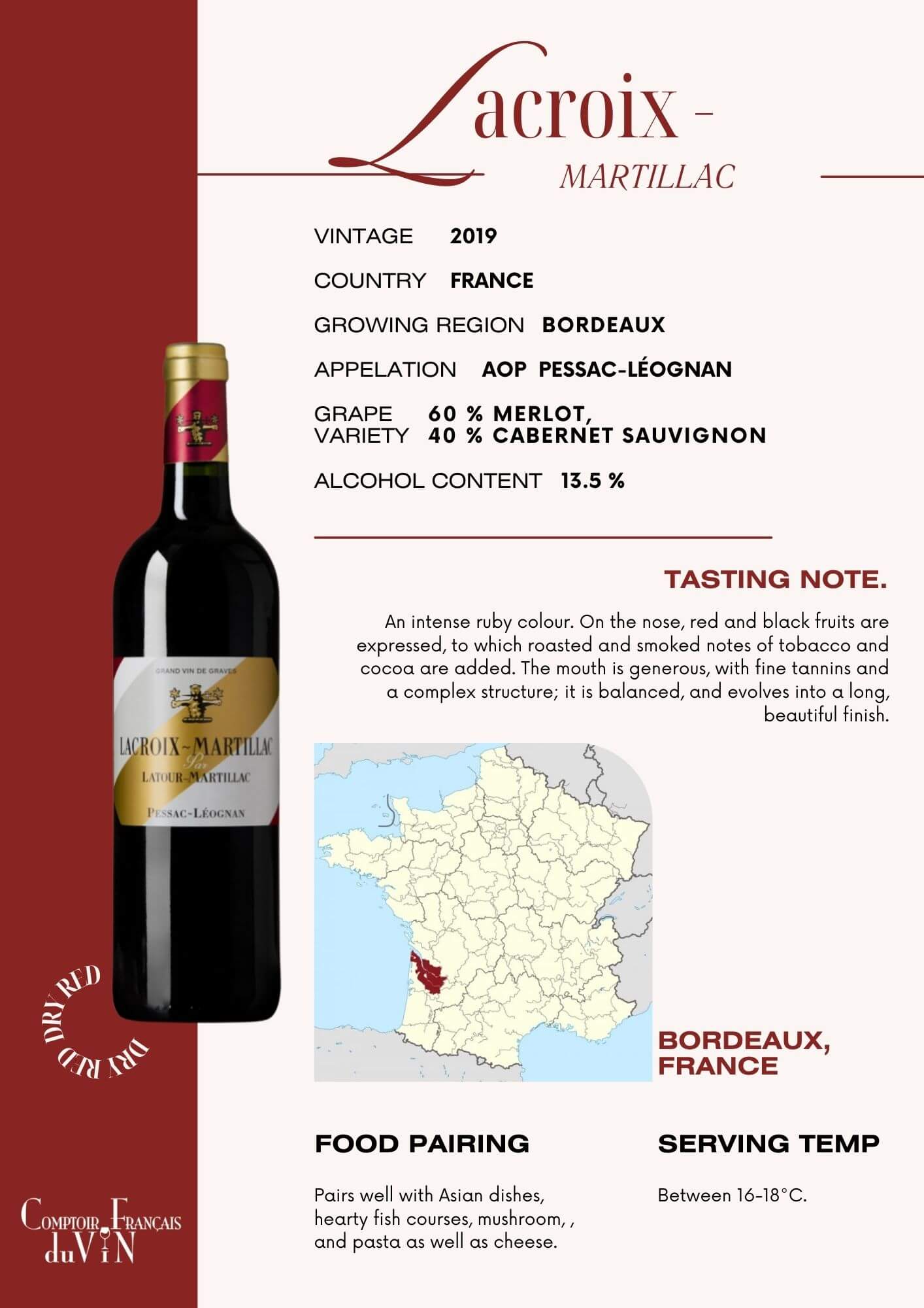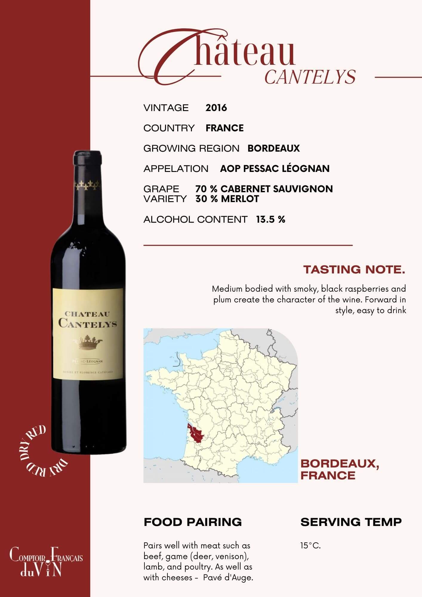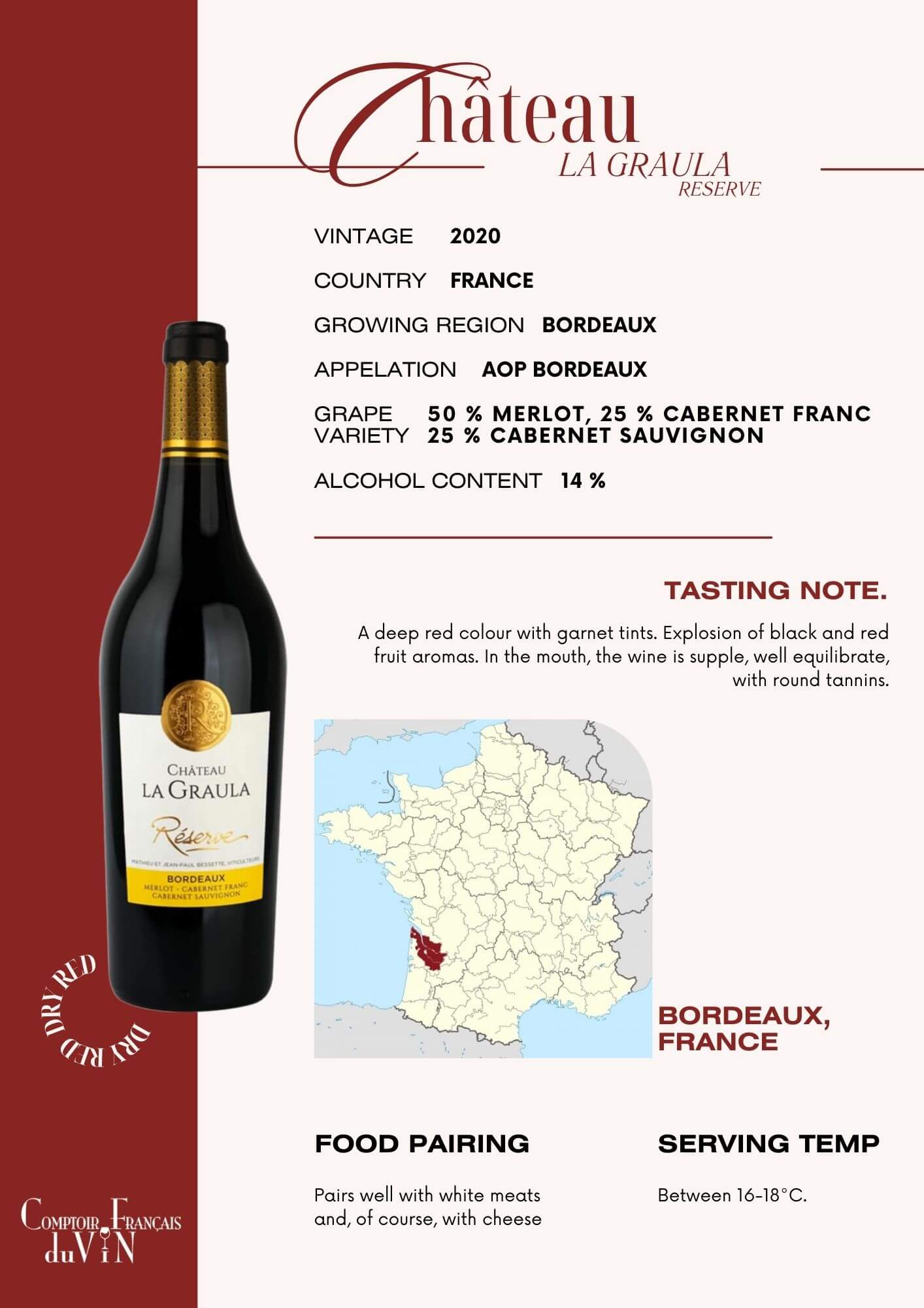 Grape Variety 50% Merlot, 25% Cabernet Sauvignon, 25% Cabernet Franc
