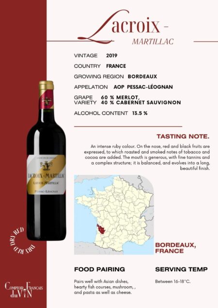 Grape Variety 55% Merlot, 40% Cabernet Sauvignon, 5% Cabernet Franc